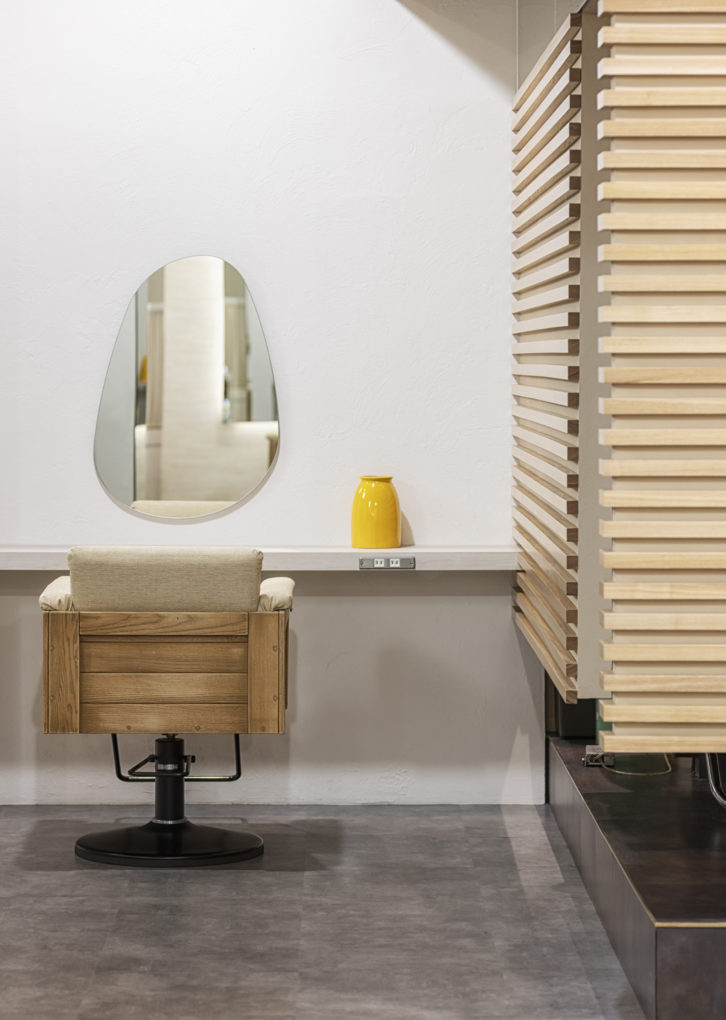 空間の随所にミラーがあるため、その場所に椅子を置くだけで、スタイリングスペースを確保でき、改装前に比べて3席増やすことができた。将来的には、あと2席ほどのスペースは確保している。