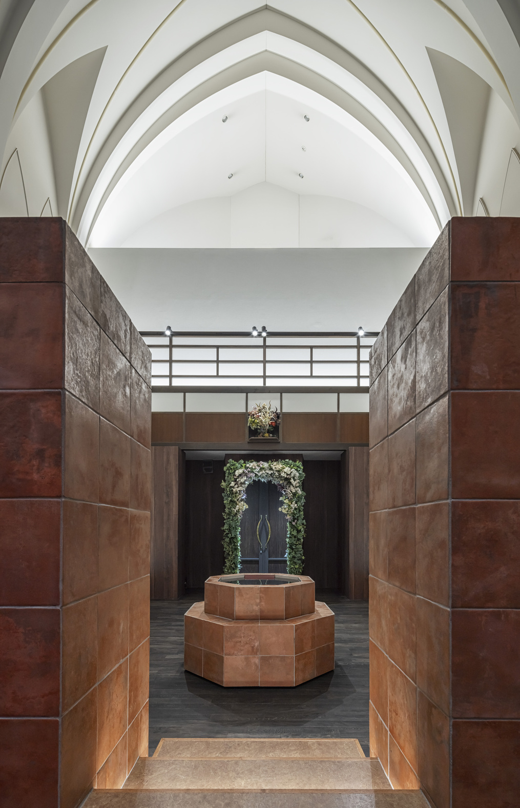 既存空間に対し、異質なものを付け足すのではなく、馴染ませる事で教会だった時の記憶を継承している。