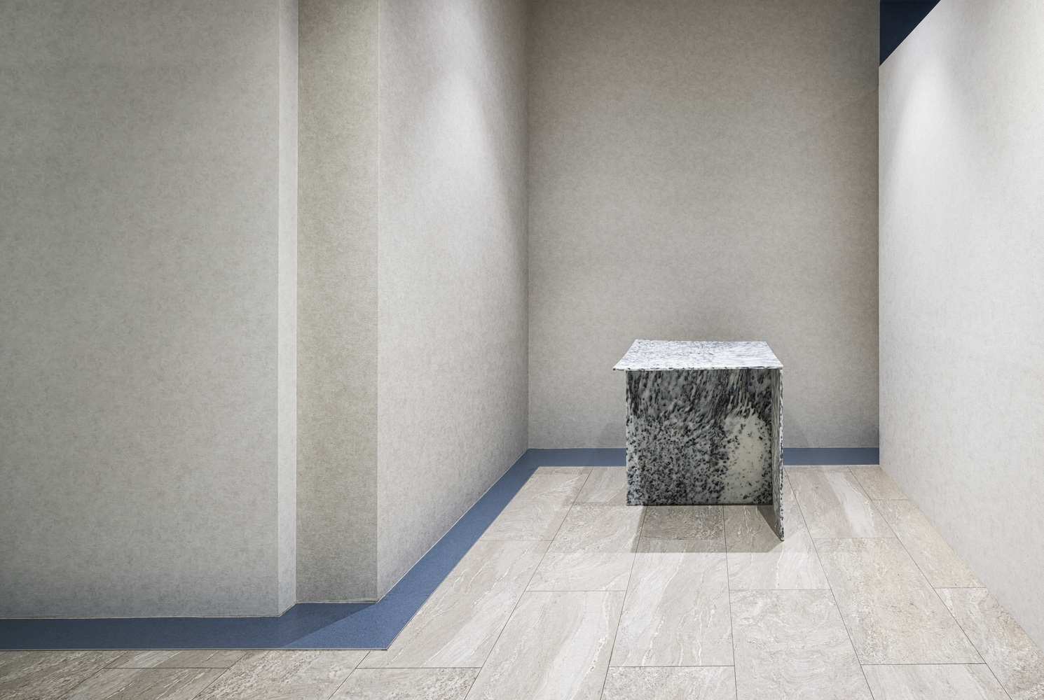 また海洋プラスチックのアップサイクル材を什器に使用することで、海への問題意識をデザインで取り入れている。