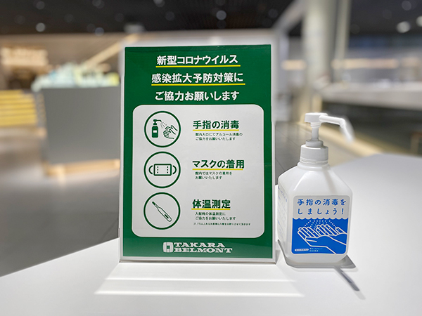 タカラベルモントショールームは、お客様に安心してご来場いただけるよう、以下の対策を実施しております。
