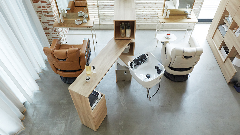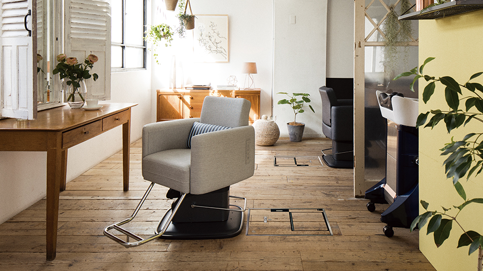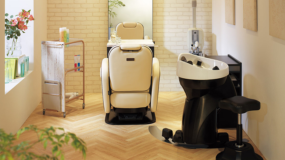 この1台でカットからシャンプーまで対応。お客さまを待たせない定点サービスの提供が可能になります。ミニマルデザインで、自由なサロン空間を演出できます。