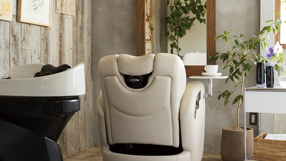 フルフラット機構でシャンプーからヘッドスパまで快適に。サロンのインテリアに合わせてお選びいただける豊富なカラーバリエーションも魅力です。